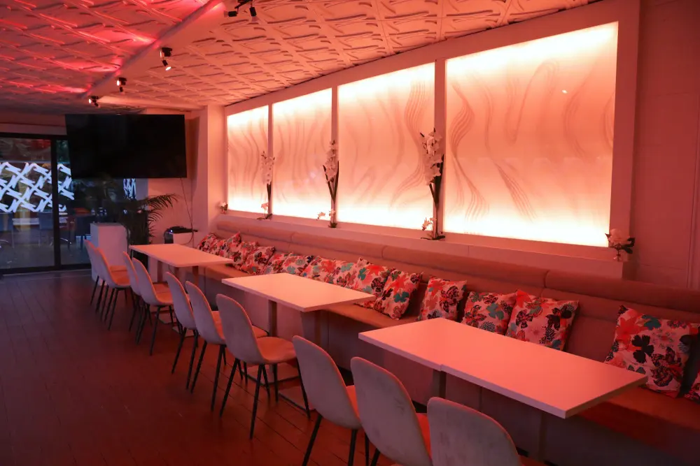Un espace lounge avec une belle terrasse pour des soirées mémorablesEn plus de sa cuisine exquise, Kekko se distingue par son ambiance lounge unique à Uccle. Que ce soit pour un dîner entre amis, une soirée romantique ou une réunion professionnelle, le cadre cosy et élégant de Kekko est parfait pour toutes les occasions. Les barmans talentueux vous concocteront des cocktails sur mesure, mariant créativité et savoir-faire pour des boissons aussi belles que délicieuses. Venez découvrir pourquoi Kekko est devenu une adresse incontournable pour les habitants d'Uccle et des environs, et laissez-vous envoûter par son charme et son atmosphère exceptionnelle.