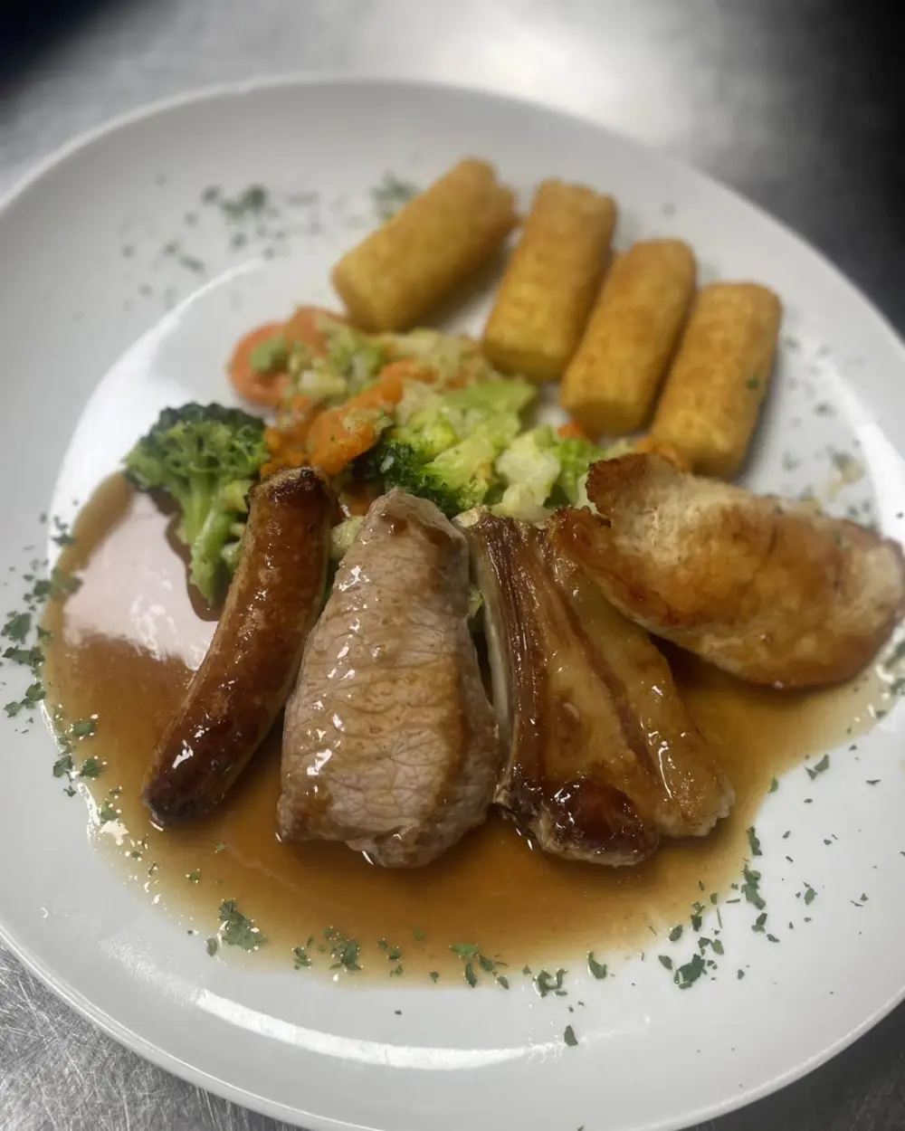 Un Lieu Convivial et Accueillant La Taverne Longchamp, située au 1 Square de Fré à Uccle, est bien plus qu'une simple brasserie. Elle s'est imposée comme un lieu de rencontre chaleureux pour les habitants et visiteurs, offrant une ambiance conviviale idéale pour partager un moment entre amis ou en famille. Avec une cuisine française, belge et portugaise, la Taverne propose une variété de plats savoureux, préparés avec passion par notre chef. Notre service non-stop de 12h à 19h permet de déguster des délices à toute heure, que ce soit pour un déjeuner rapide ou un repas tardif.