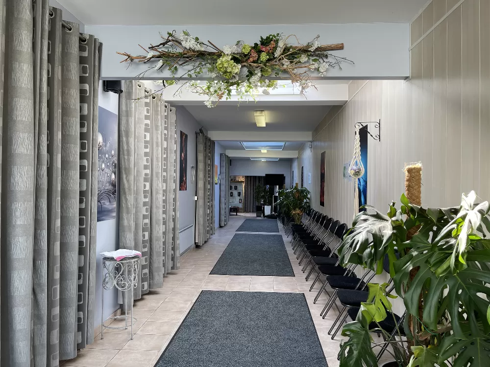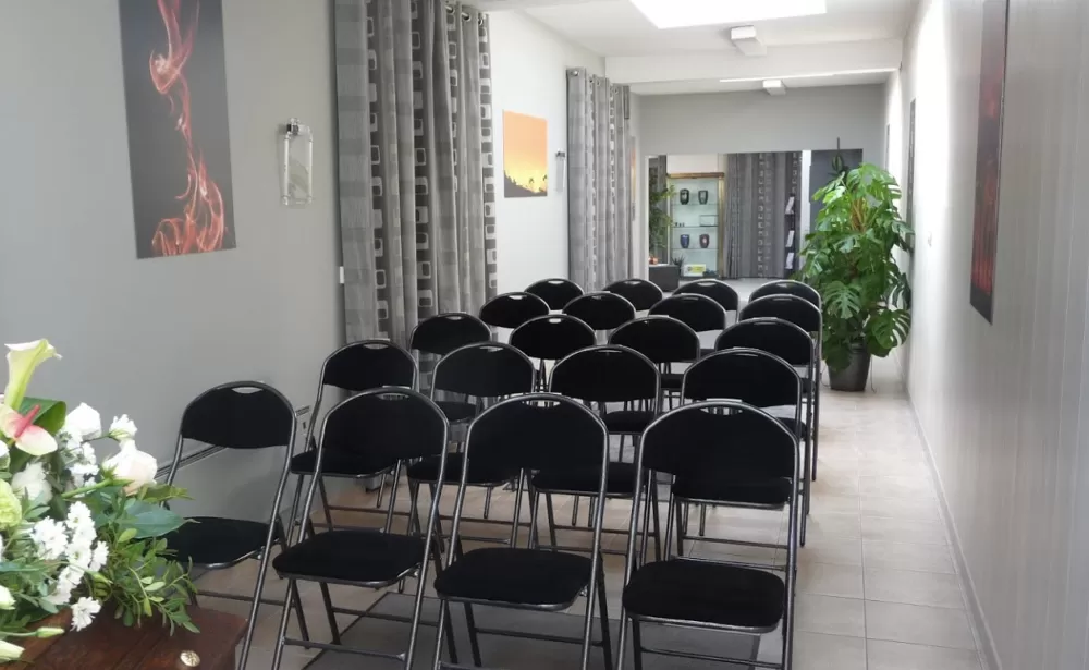 Qu’elle soit religieuse ou civile, une incinération, une inhumation ou tout autre service (rapatriement, exhumation…), avec dignité et dévouement, nous veillons au bon déroulement de la cérémonie. Notre funérarium dispose de salons séparés pour vous recueillir lors des veillées.